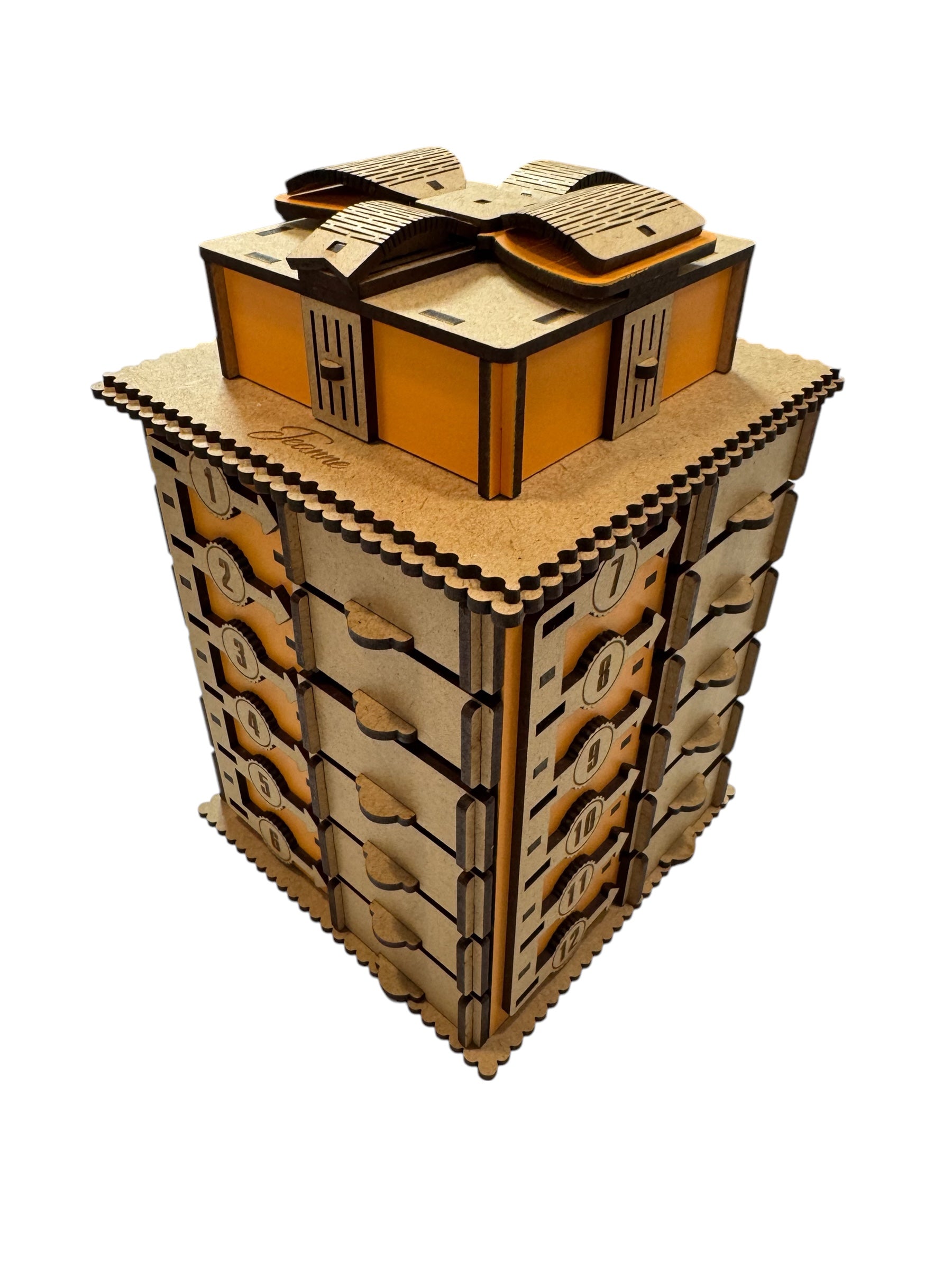 Découvrez une tour de l’Avent en bois MDF, entièrement découpée au laser, conçue pour offrir une expérience de Noël originale et chaleureuse.