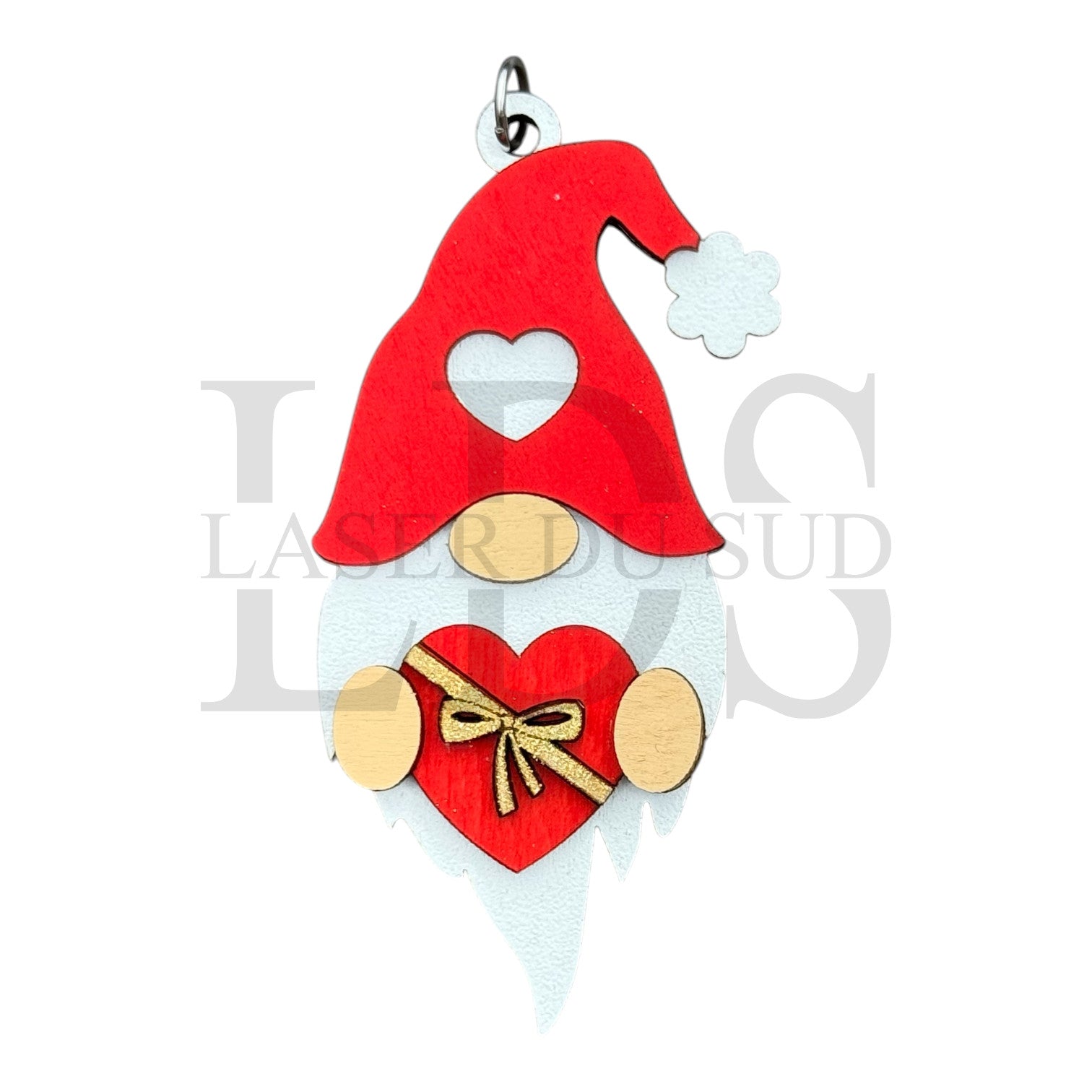 - Suspension gnome en contreplaqué de tilleul (découpe et gravure laser, finition artisanale)