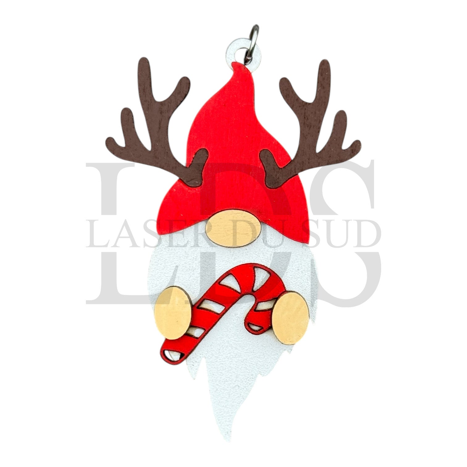 - Suspension gnome en contreplaqué de tilleul (découpe et gravure laser, finition artisanale)